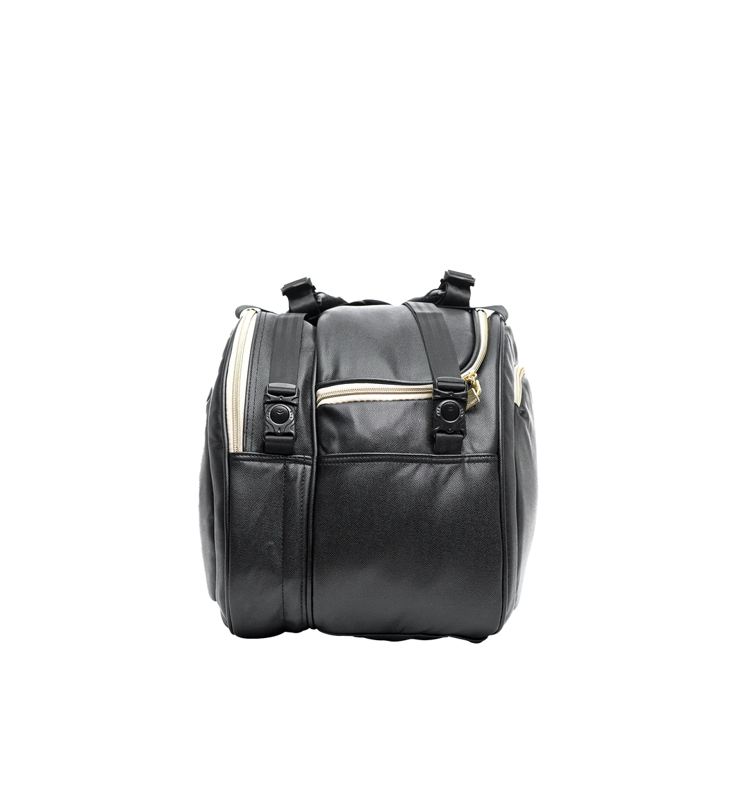 El Bolso de Pádel Vibora es cómodo de llevar con bandoleras y asa. Cuando posees un equipo premium, es importante protegerlo, ¿por qué no hacerlo con estilo? El bolso está impermeabilizado con piel sintética recubierta de PU y presenta los logos dorados de Slazenger Padel en ambos lados.