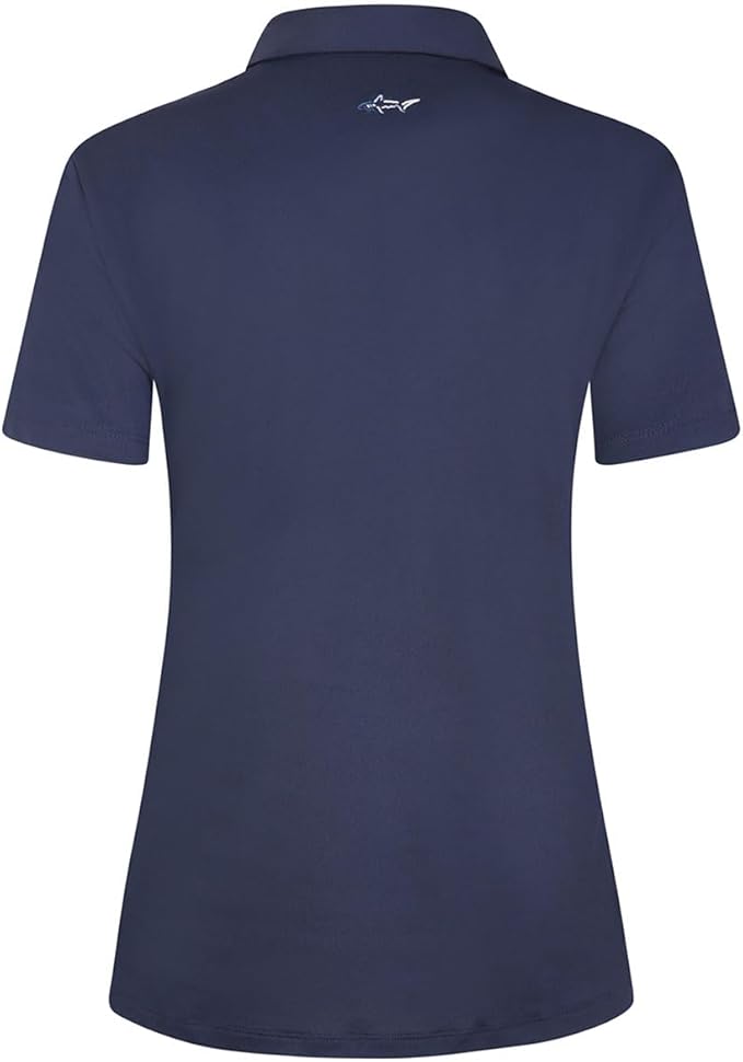El polo Freedom Micro Pique Stretch para mujer ofrece libertad de movimiento, transpirabilidad, ausencia de estática y olores, ligereza, transpirabilidad y libertad de movimiento. Confeccionado en 91 % poliéster y 9 % elastano, cuenta con tecnología PLAY DRY que absorbe la humedad y protección solar UPF 20+, y luce el logotipo del tiburón bordado en azul grisáceo en la parte posterior.